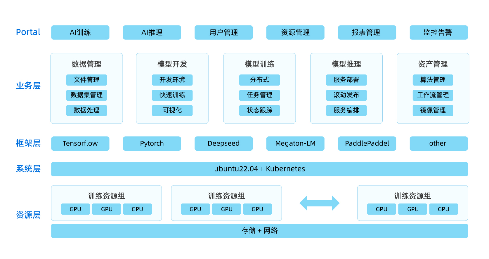 异构算力统一纳管: 可以同时支持NVIDIA GPU、华为昇腾、寒武纪、海光DCU等算力集群纳管;提供标准CUDA/ROCm/CANN算子库适配层,降低模型迁移成本。 AI原生调度策略: 支持拓扑感知调度,显存超分、训练-推理混部和多集群联合调度和算力协同能力。 全栈性能优化: 可实现计算优化、通信优化、存储优化和网络传输优化。 MLOps全生命周期支持: 预置PyTorch/TensorFlow/PaddlePaddle等框架镜像,提供模型训练和和推理的精细化管理,提供实验管理的精细化控制,提升客户对算力资源的使用效率。 | ![]() |